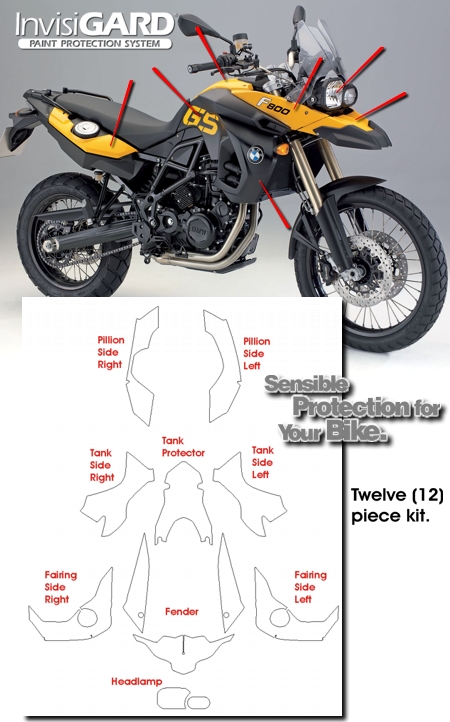 All of our kits have been computer designed and precut - no trimming required - for your specific year and model of bike. Each kit contains all the pieces shown on the diagram, an installation squeegee as well as comprehensive easy-to-follow online installation instructions.