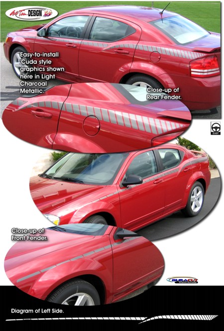 Set your '08-'14 Dodge Avenger apart from the rest with this classic AAR 'Cuda style body side graphic set.