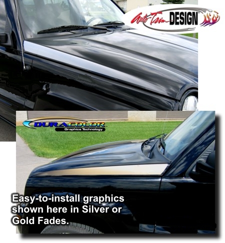 Enhance your '03-'04 Ford Cobra's hood with this awesome looking two (2) color Hood Graphics kit. These graphics are contoured to the inner Hood Vent lines of the Cobra's factory hood as shown. They're precut and ready to install - NO TRIMMING required! Kit is available in one of four (4) color combinations. Graphic pieces are covered with a 2.5 mil clear laminate which will protect the graphics from miles of abuse. Each Hood Graphic measures 11.828"x 27.931" (30.04cm x 70.94cm). Graphic kit is very easy to install and includes general online application and care instructions. |